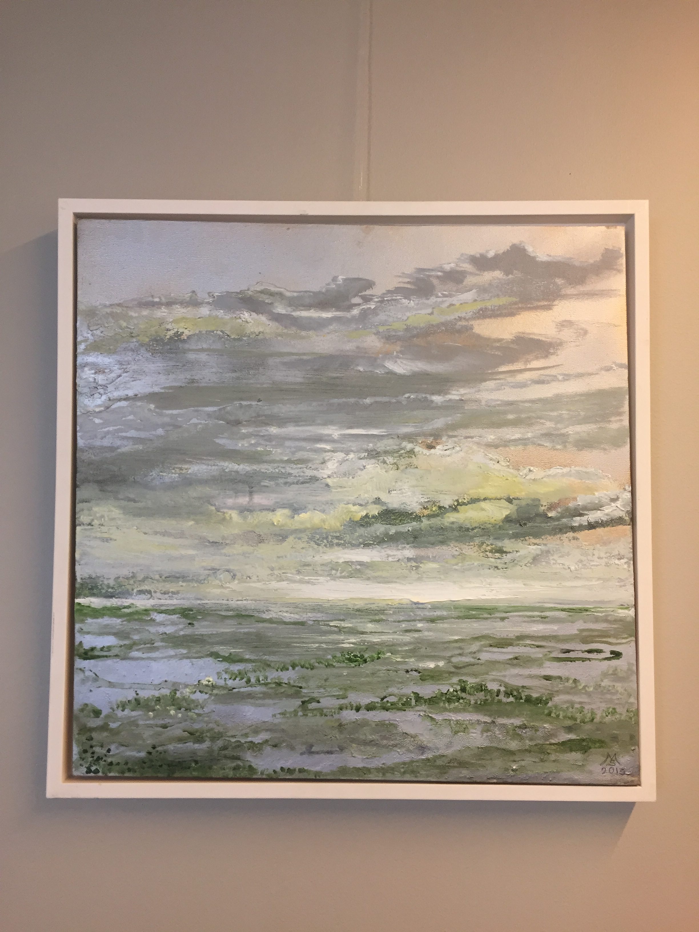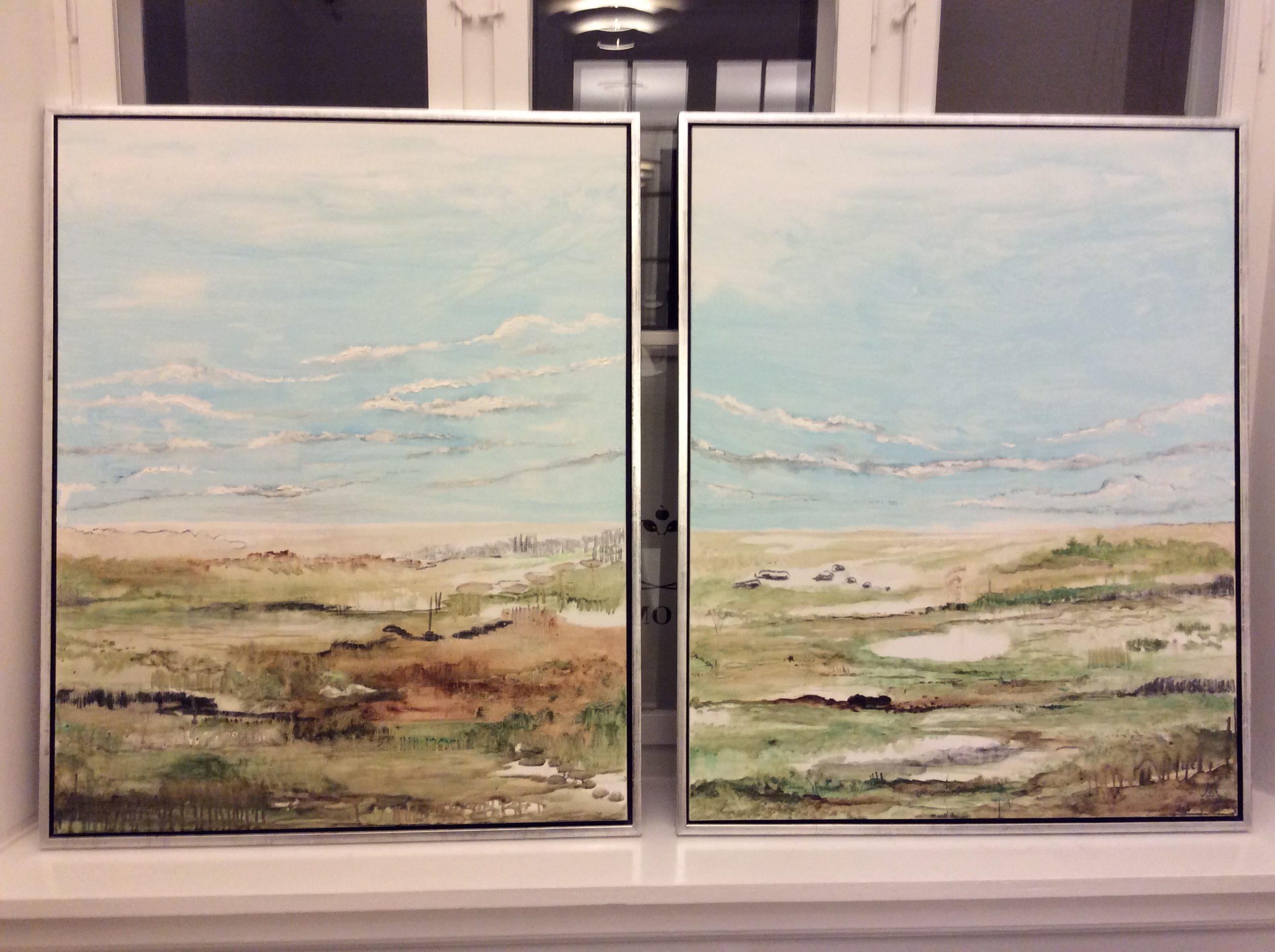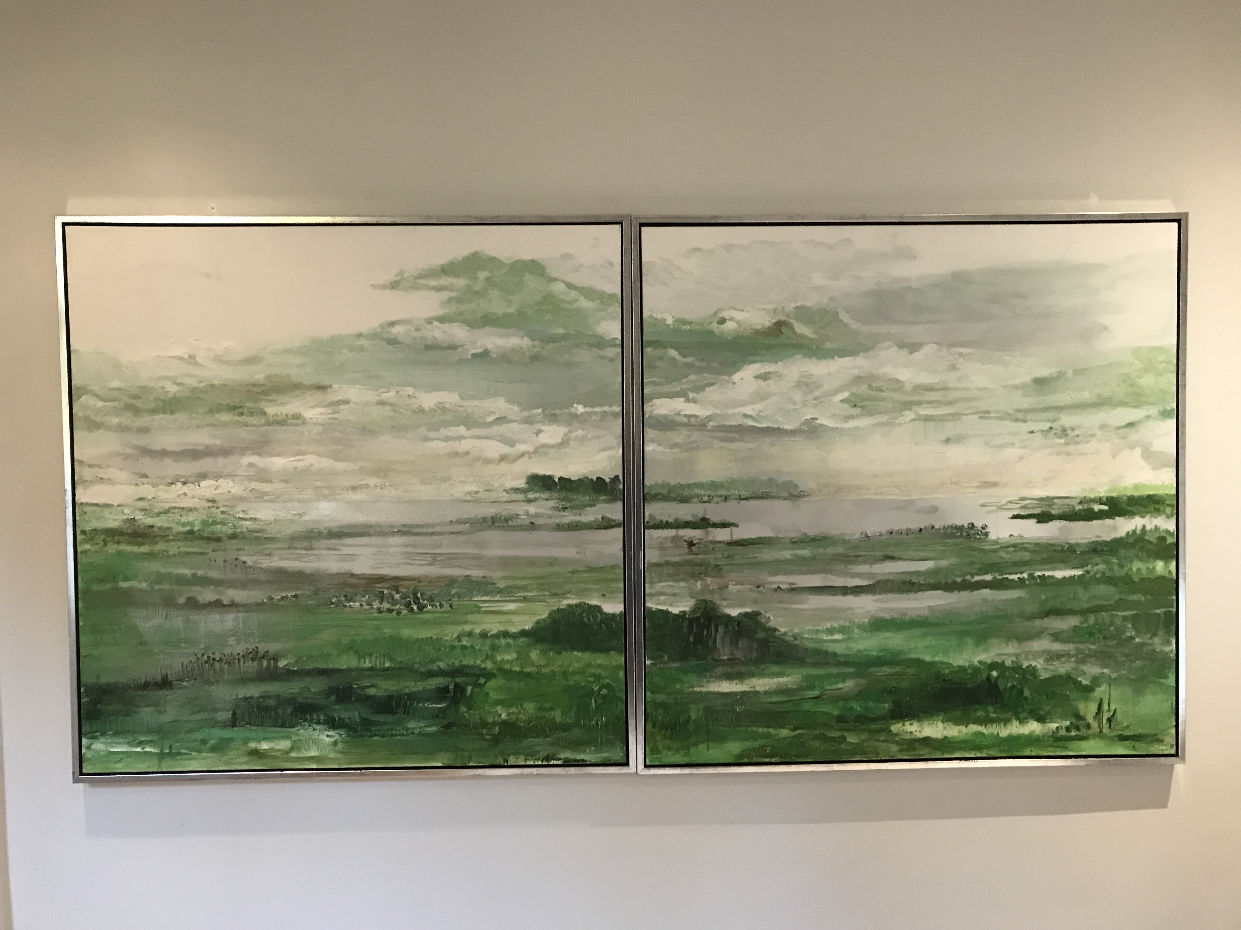 Grønt og godt for øjet – lyset i Vendsyssel. Olie/ sølvlak på lærred. Dobbeltbillede 2 x (100×100 cm) (2018)