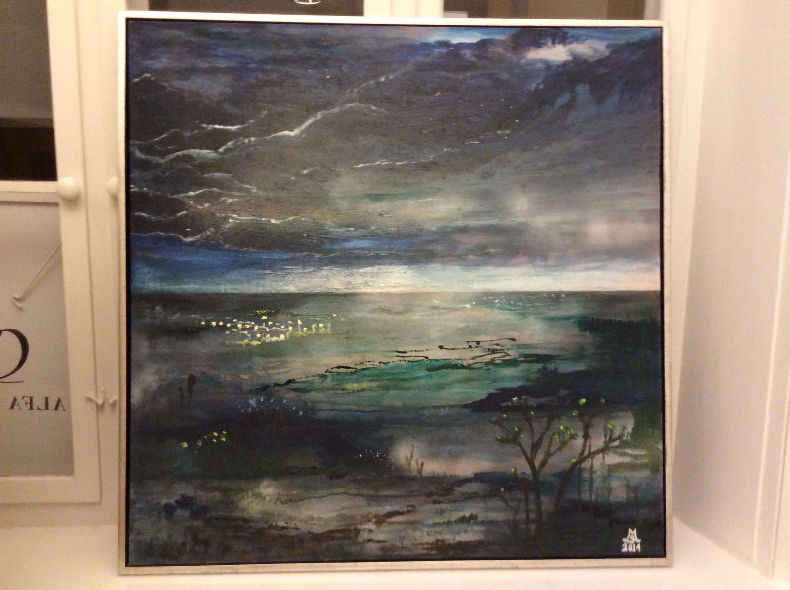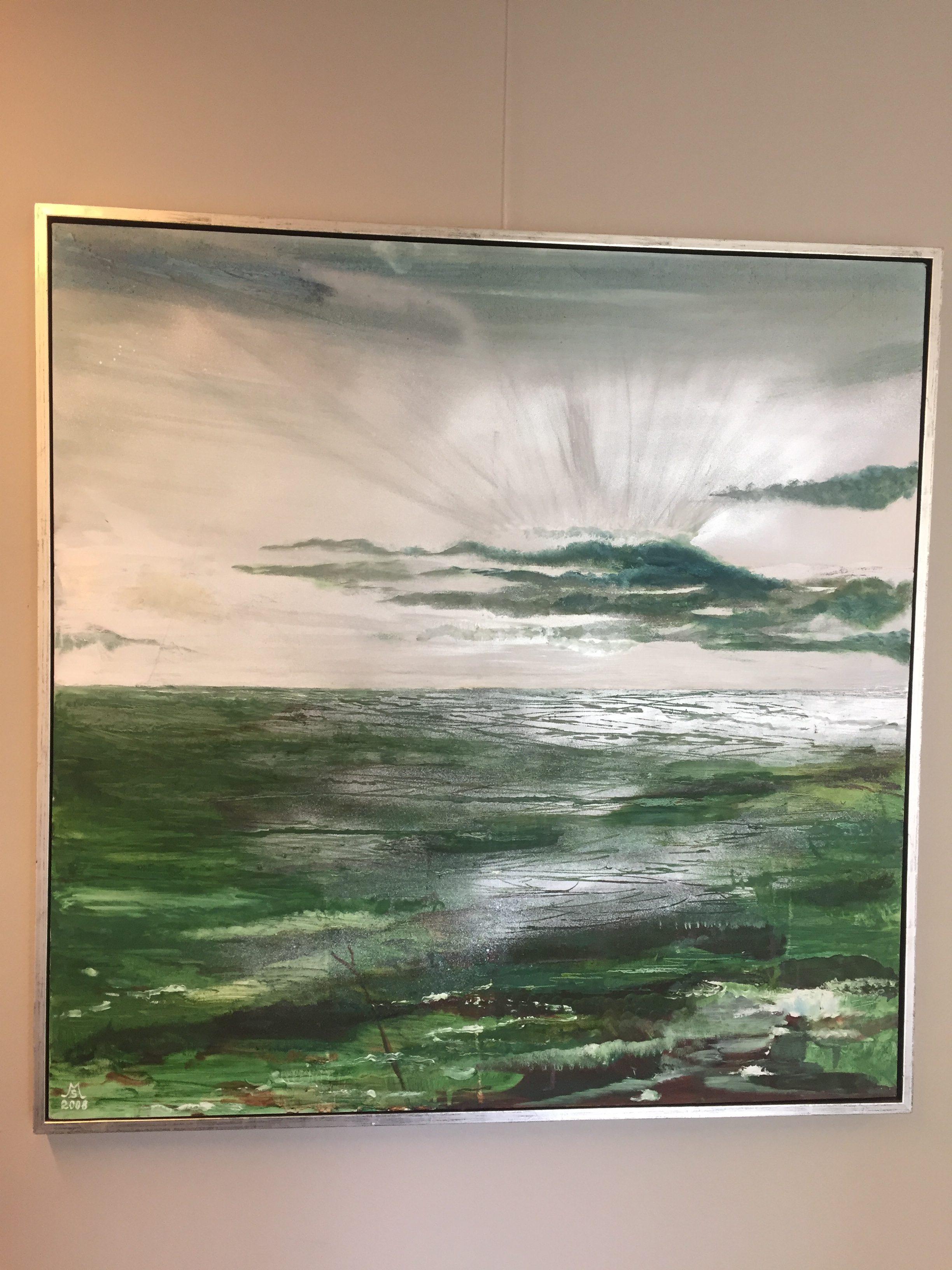 Lyset over Vesterhavet, olie og sølvlak på lærred, 100×100 cm. (2010)