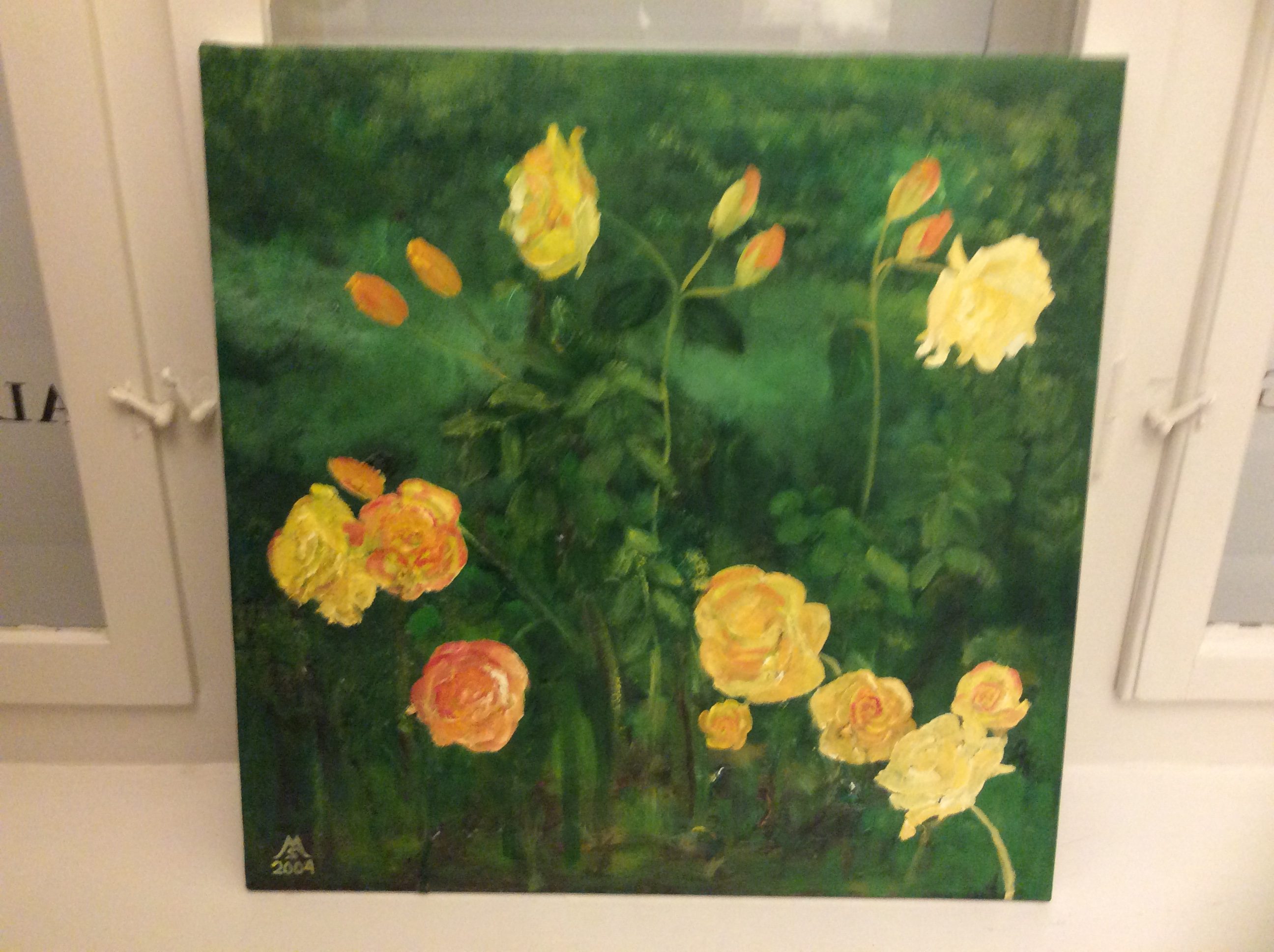 Gule roser fra Dannerhøj. Olie på lærred. 60×60 cm. (2004)