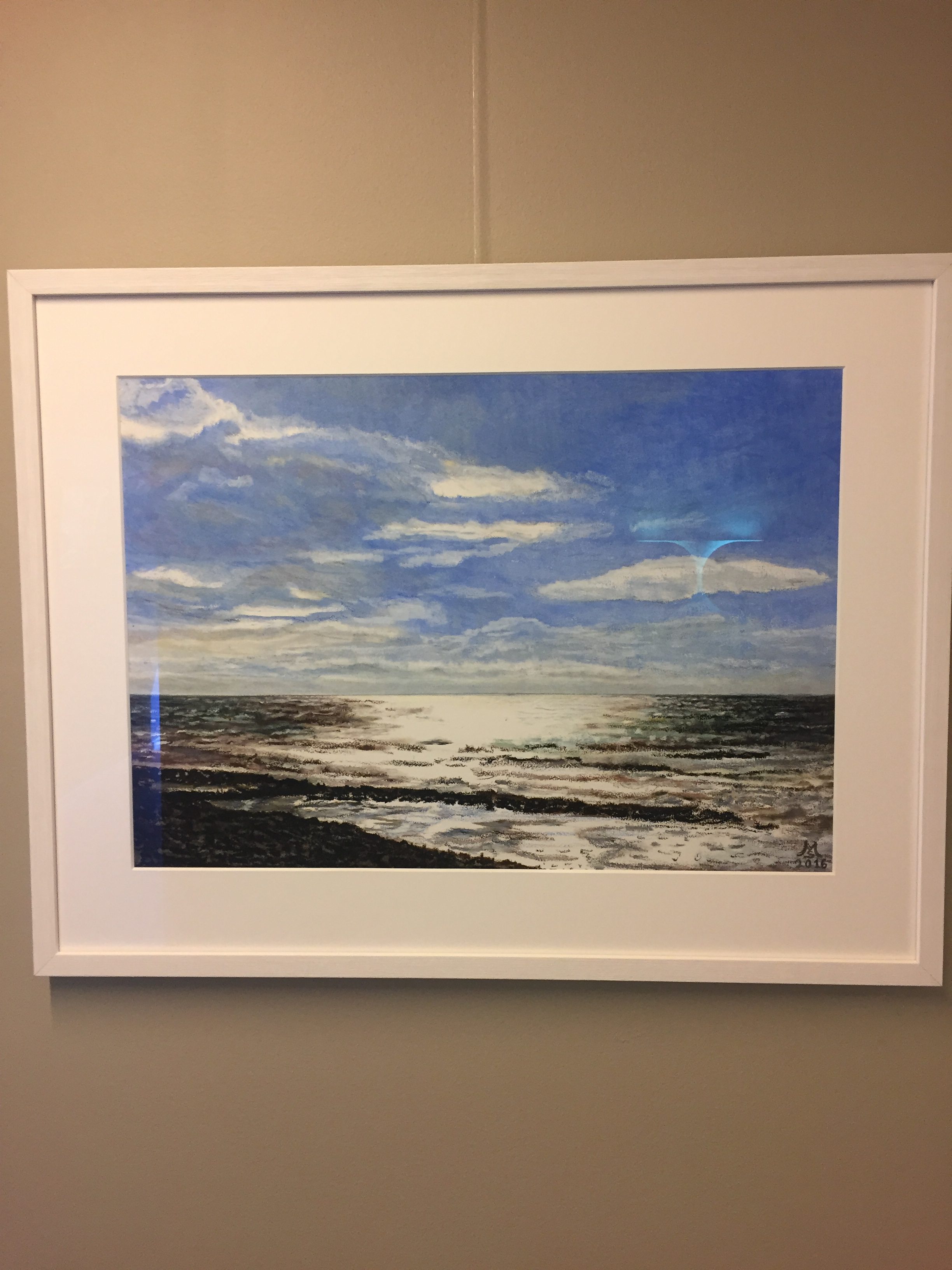 Udsigt fra Villa Vest, Lønstrup. Oliepastel på papir med specialglas. 70×50 cm. (2016)
